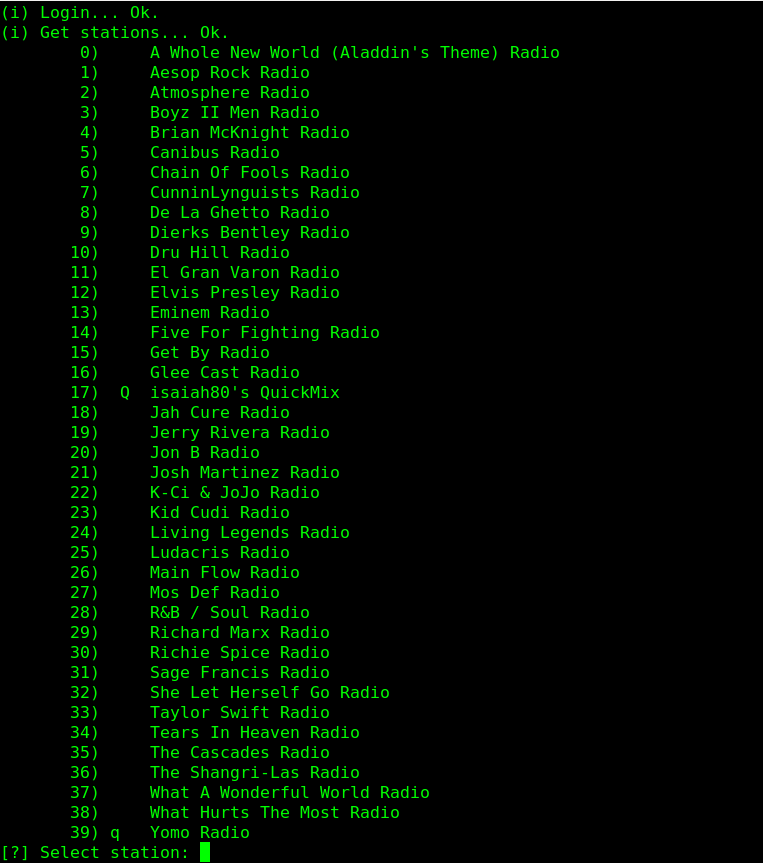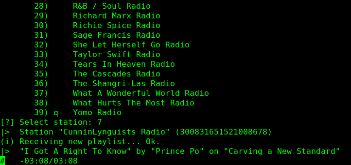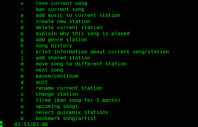 If you’re a command line geek and/or want to keep the strain on your system as low as possible, then Pianobar is an awesome alternative. There are packages available for a number of different distros. The program itself is simple: Open a  terminal, log in to your account, and select the station you want to listen to. You can even ban a song, create a new station, view song history, and everything else you can do in Pandora right from the Terminal. Also there’s no annoying commercial every 3 songs.